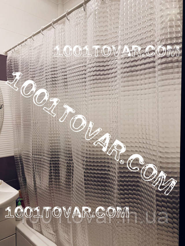 Силіконова шторка для ванної кімнати з 3D-ефектом, розмір 180х180 см, біло-прозора.