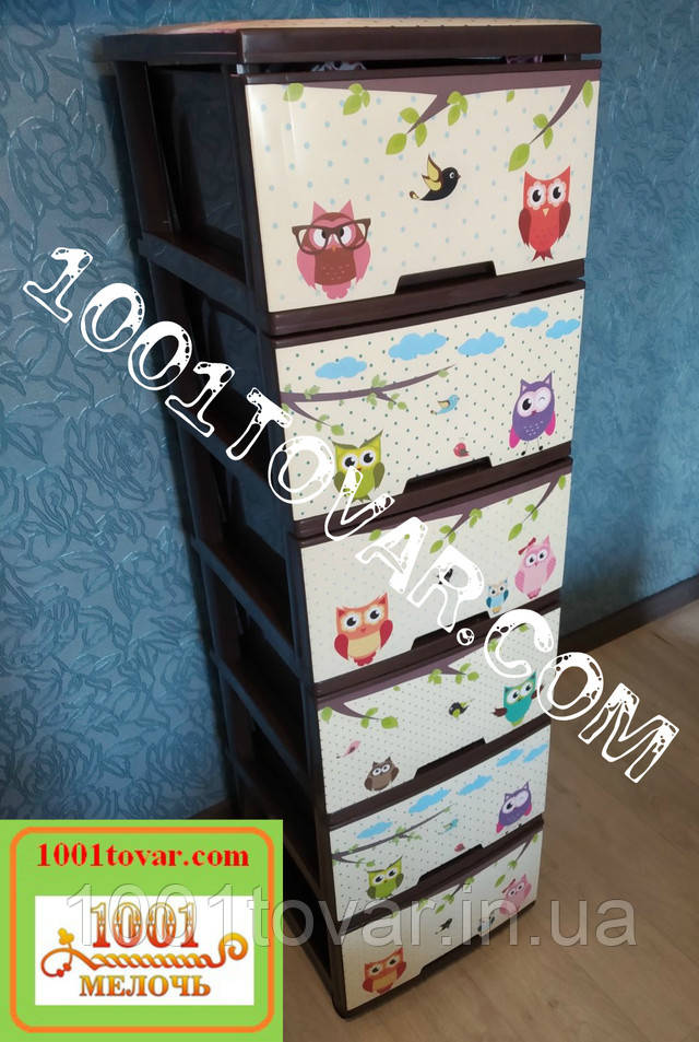 Комод пластиковий, з малюнком Сови коричневий, 6 ящиків, Алеана