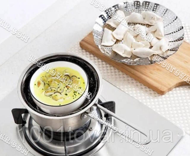 У стравах, які готуються на пару - у продуктах зберігається максимальна кількість вітамінів та корисних речовин. Відмінно підходить для приготування їжі на пару, виготовлена з нержавіючої сталі.