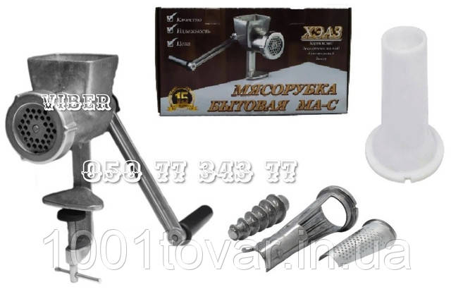 М'ясорубка ручна побутова з насадками для соку та ковбаси МА-С, ХЕАЗ з насадками для соку та ковбаси.