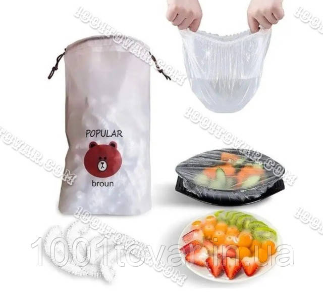 З ним ви можете легко накривати їжу, зберігаючи свіжість та аромат на довгий час. Пакети шапочки для їжі - це зручно, практично та ЕКОНОМІЧНО! Чохли для їжі 100 штук відмінна заміна харчової поліетиленової плівки, силіконових і зіп пакетів, фасувальних пакетів і стрейч плівці, яку незручно розкривати. Пакети з ведмедем для посуду діаметром до 30 см. Пакувальні прозорі пакетики і шапочки для їжі - все це необхідні елементи в будь-якій кухні. Але чому б не поєднати їх в один універсальний продукт?