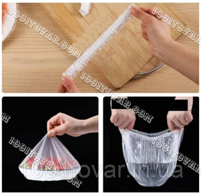 Наш пакувальний товар – це не просто пакети для зберігання їжі, це справжній фасувальний інструмент. Прозорі пакети для зберігання дозволяють легко побачити, що знаходиться всередині, і переконатися, що ваша їжа зберігає свіжість. Завдяки зручним пакетам шапочкам, ви можете зберігати свої страви в ідеальному стані, уникаючи пересихання та контакту з іншими продуктами. Кришки-пакети на гумці захищають їжу, їжу та продукти від пилу дощу та комах.