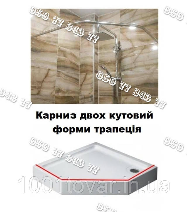Карниз із нержавіючої сталі двох кутовий 100х100 см. трапеція, діаметр труби 20 мм. Цей карниз полірований до блиску, виготовлений із нержавіючої сталі та не схильний до корозії, і не зіпсується від води.