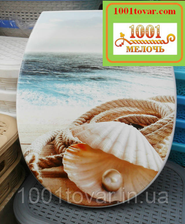 Пластикове сидіння з кришкою для унітазу "Мушля з перлиною"