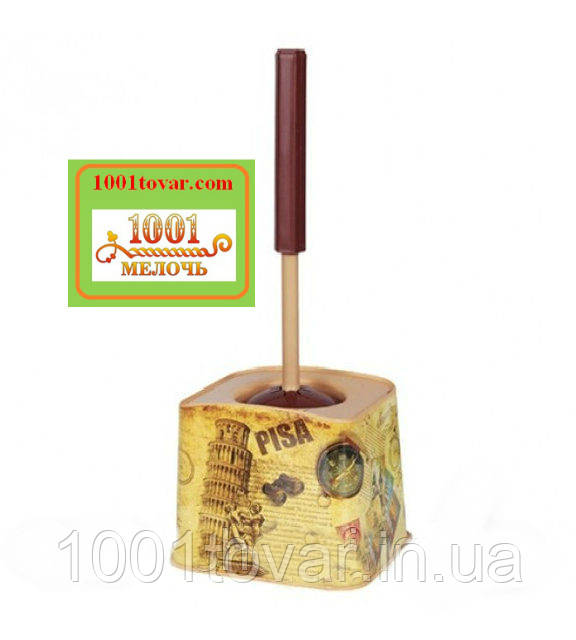 Туалетный комплект состоит из ершика с удобной ручкой и оригинальной пластиковой подставки, квадратной формы, с нанесенным рисунком "Пиза".