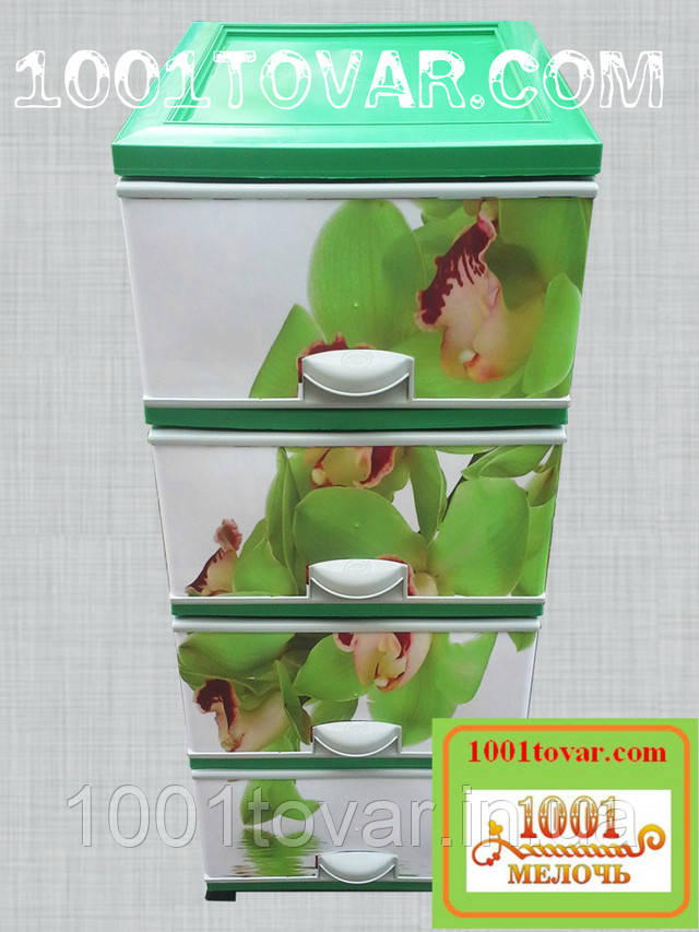 Комод пластиковий, з візерунком "Квіти", 4 ящики. Під замовлення.