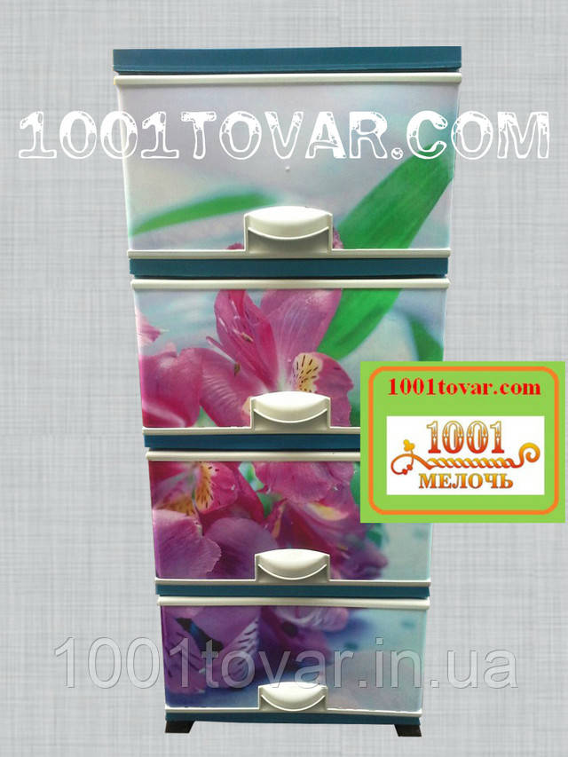 Комод пластиковий, з малюнком "Квітка", 4 ящики. Під замовлення.